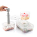Un set versatil de 3 recipiente de ambalare în vid de diferite dimensiuni și capacități perfecte pentru a păstra alimentele proaspete mai mult timp, cu toată aroma și nutrienții ei. În plus, sunt foarte utile pentru a accelera procesul de marinare a unor alimente. Au capac cu supapă de vid și 4 clapete pentru închidere ermetică, anti-picurare și anti-vărsare. Este inclusă o pompă manuală de vid pentru ambalarea ușoară a alimentelor în vid, ceea ce îmbunătățește și prelungește conservarea optimă a acestora de până la 3 ori. Pur și simplu, trebuie să așezați pompa de vid pe supapa capacului, exercitând presiune asupra acesteia și să acționați pistonul pompei în sus și în jos până când tot aerul este îndepărtat din interiorul recipientului. Vidul este îndepărtat prin apăsarea supapei de pe capac. Aceste cutii de prânz multifuncționale originale sunt potrivite pentru frigider și congelator, permițându-vă să organizați mâncarea folosind mai bine spațiul. De asemenea, sunt sigure pentru cuptorul cu microunde, atât pentru încălzirea alimentelor, cât și pentru gătitul rapid, cu conținut scăzut de grăsimi. Sunt ușor de curățat în mașina de spălat vase. Ideale pentru toate tipurile de alimente (carne, pește, mezeluri, legume, fursecuri, gustări, supe, salate etc.). Dacă se dorește, pot fi folosite pentru a transfera alimente, cum ar fi cutiile convenționale de prânz.