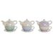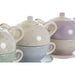 Ceainic DKD Home Decor Albastru Alb Verde Liliachiu Dolomite 750 ml (3 Unități)