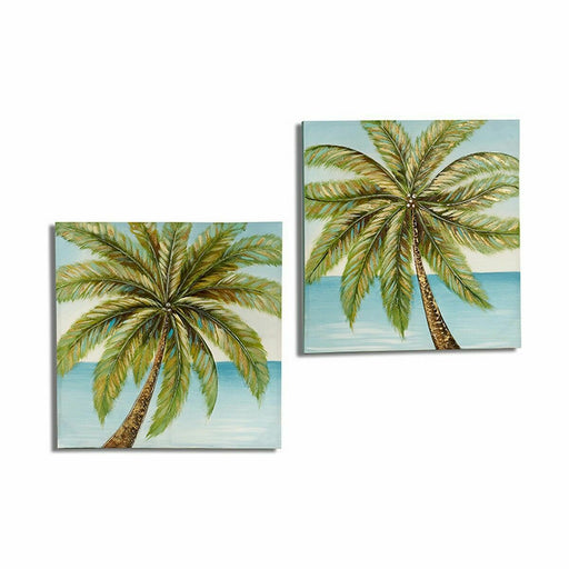 Pânză Palmier Albastru Maro Verde 3 x 80 x 80 cm (2 Unități)