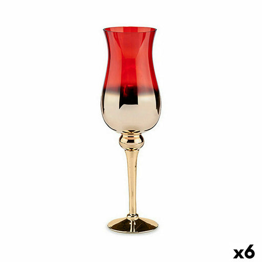 Suport de Lumânări Geam Roșu Auriu* 13 x 45 x 13 cm (6 Unități)