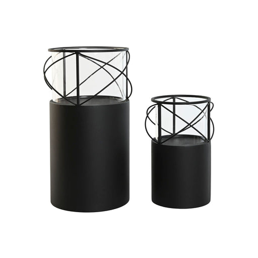 Suport de Lumânări Home ESPRIT Negru Metal Geam 24,5 x 24,5 x 46 cm (2 Unități)
