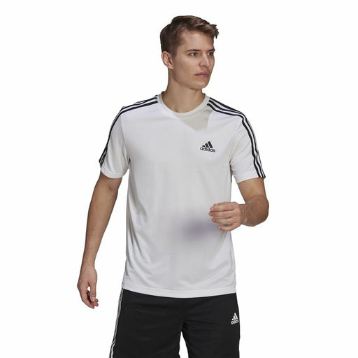 Vezi detalii completeTricou cu Mânecă Scurtă Bărbați Adidas Aeroready D2M Sport 3 Bandas Alb