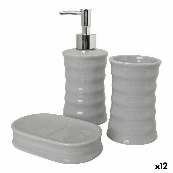 Set de Baie Unde Ceramică Gri Metal (12 Unități)