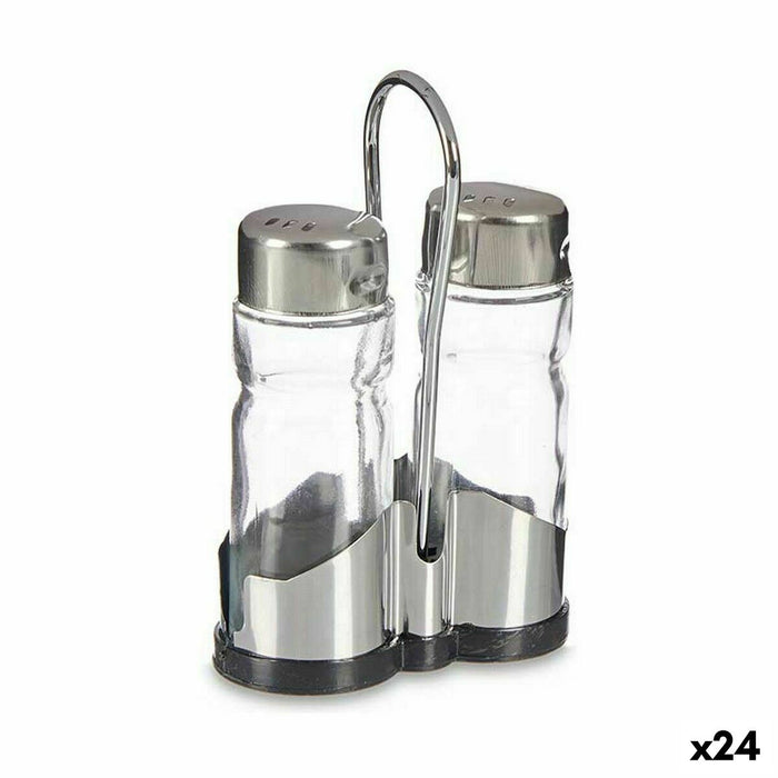Set Solniță și Piperniță Transparent Metal 3,8 x 12 x 7,8 cm (24 Unități)