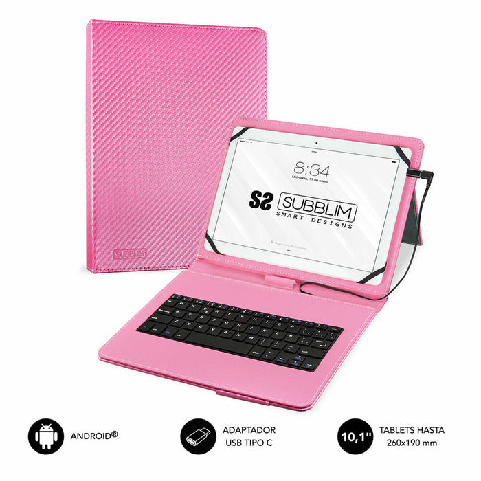 Husă pentru Tabletă și Tastatură Subblim SUB-KT1-USB003 10.1" Roz Qwerty Spaniolă QWERTY